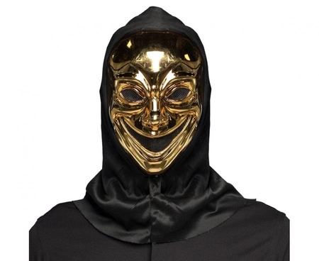 Maska złota „Szalony Morderca” z kapturem to kostiumowy element marki Boland. Produkt w kolorze złotym, rozmiar uniwersalny, 1 sztuka. Kaptur osłania głowę, maska zakrywa twarz — sprawdzi się na Halloween, imprezy kostiumowe oraz jako rekwizyt do fotobudki. Łatwa i szybka do założenia.