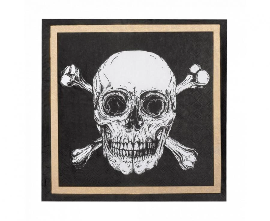 20 sztuk w opakowaniu • Idealne na imprezy tematyczne • Wzór piracki • Wysoka jakość papieru • 33x33 cm