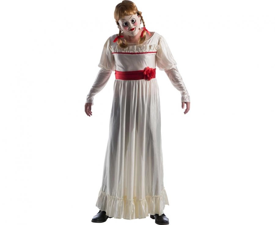 Zestaw kostiumu Annabelle dla dorosłych zawiera sukienkę, maskę, perukę oraz pasek. Rozmiar uniwersalny, sukienka wykonana w 100% z poliestru; dominują kolory kremowy i czerwony. Przeznaczony na Halloween, imprezy tematyczne, sesje zdjęciowe oraz konkursy kostiumowe.