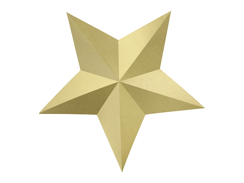 - Dekoracja Gwiazdy w kolorze złotym, do samodzielnego złożenia, w zestawie gwiazdy o wymiarach ok.: 37 x 35 cm, 33 x 31 cm, 28,5 x 27,5 cm, 16 x 15 cm, 14 x 13,5 cm, 12 x 11,5 cm i złoty sznurek. (1 op. / 6 szt.)