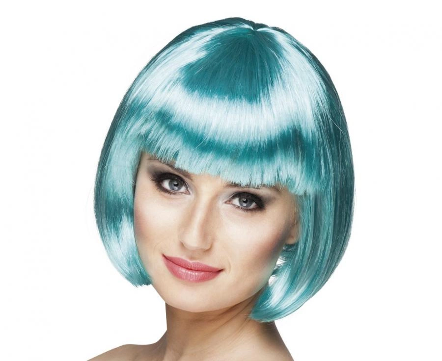 Turkusowa peruka Kabaret od Boland to krótka damska peruka z grzywką, wykonana z włókien poliestrowych w uniwersalnym rozmiarze. W komplecie 1 sztuka, wewnętrzna siateczka stabilizuje perukę na włosach. Przydatna na wieczory panieńskie, Halloween, urodziny i sesje tematyczne.