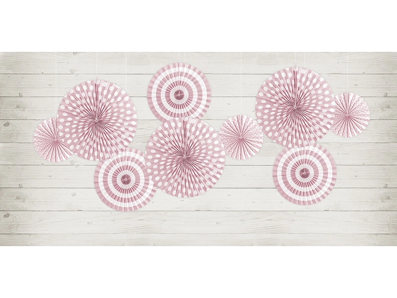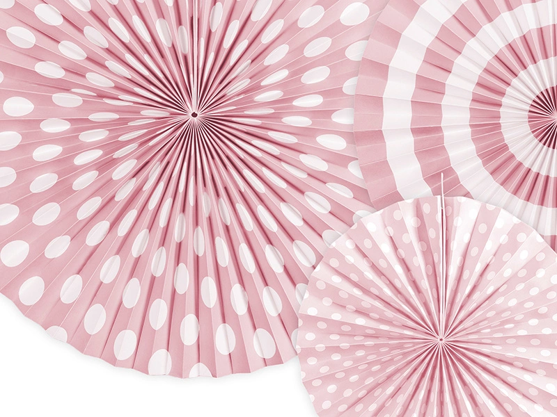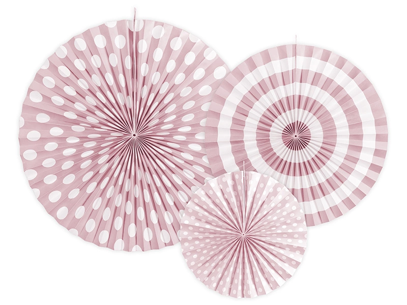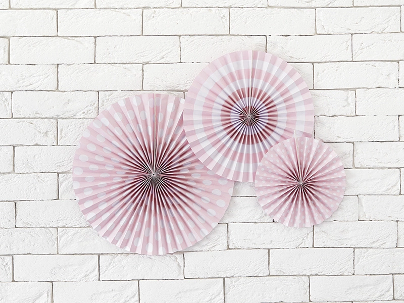 - Rozety dekoracyjne Pastelove, w kolorze jasnoróżowym, z nadrukiem, średnice ok.: 40 cm, 32 cm i 23 cm. (1 op. / 3 szt.)