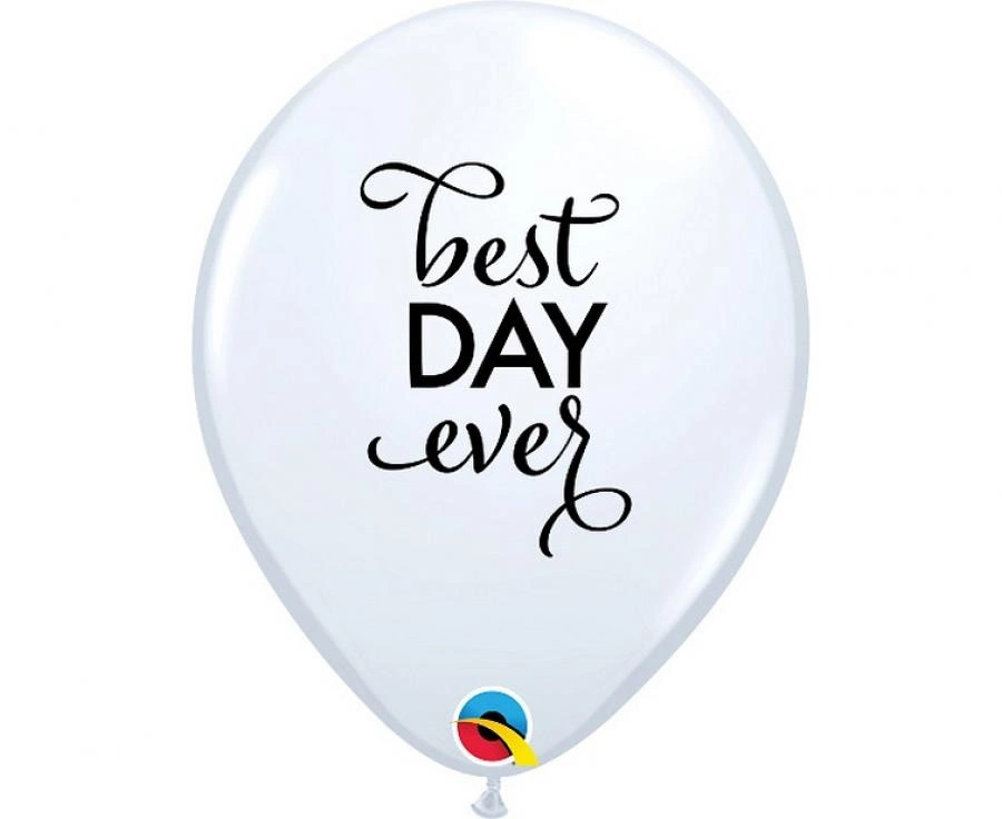 Balon 11" z nadr. Best Day Ever, biały / 25 szt.