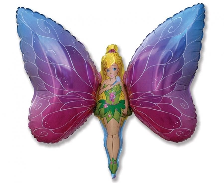 Balon foliowy 24" w kształcie wróżki ze skrzydełkami, wielokolorowy, 1 sztuka, producent Flexmetal. Przed napełnieniem ma około 68×100 cm. Przeznaczony do napełniania helem — napełnienie powietrzem nie spowoduje unoszenia. Produkt sprzedawany luzem, bez opakowania.