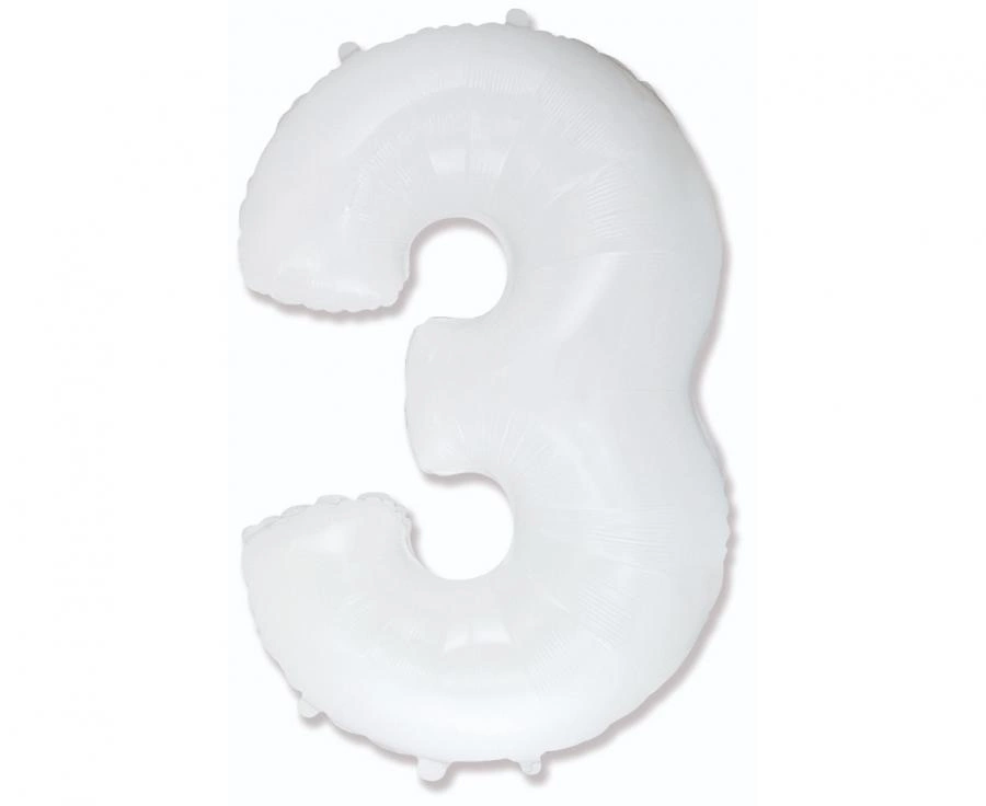 Balon foliowy - "Number 3" biały, 85 cm