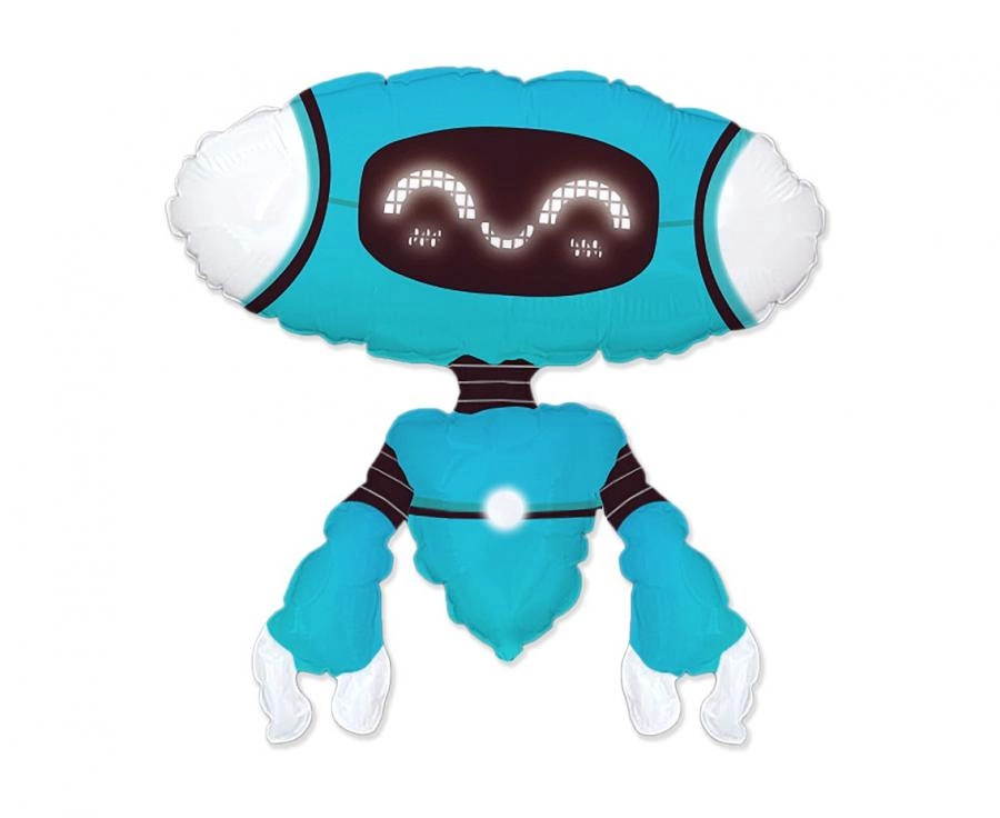 Balon Robot Blue to pojedynczy, duży element dekoracji pasujący do przyjęć tematycznych i dziecięcych. Sprawdzi się jako element dekoracji stołu lub tła do zdjęć.