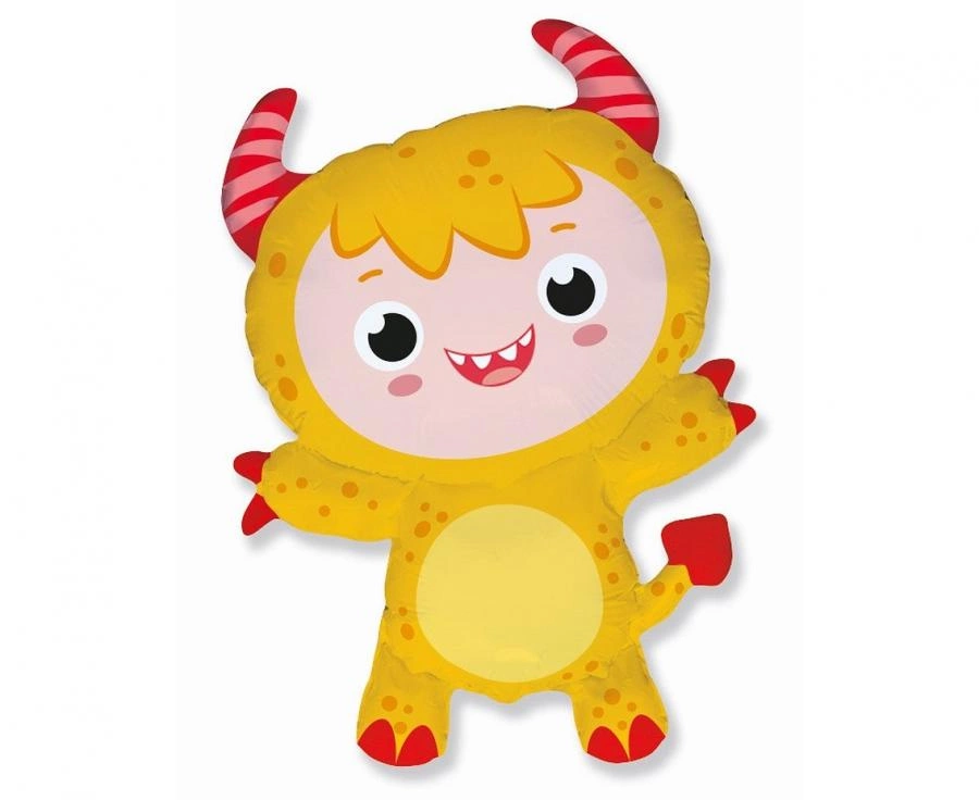 Balon foliowy 24" Mały Potwór (żółty) to pojedynczy balon w kształcie potwora, przeznaczony na imprezy takie jak urodziny, Halloween, baby shower czy wieczór panieński. Wymiary przed napompowaniem: 86 cm wysokości i 60 cm szerokości; producent: Flexmetal. Sprzedawany luzem; napełnienie powietrzem powoduje, że balon nie będzie się unosić.