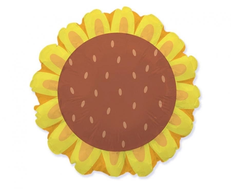 Balon foliowy 24" w kształcie słonecznika (ok. 24 cale / ~61 cm) w kolorach żółtym i brązowym, z nadrukiem słonecznika. Produkt sprzedawany jako 1 sztuka od producenta Flexmetal. Nadaje się jako dekoracja na urodziny, baby shower, wieczór panieński, wesele i letnie przyjęcia; napełniony powietrzem nie będzie się unosić.