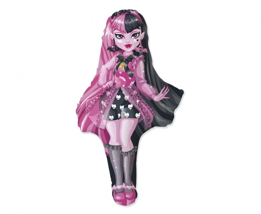 Balon foliowy 24" w kształcie laleczki Monster High z nadrukiem Draculaury. Rozmiar ok. 60 cm, wielobarwny, producent Flexmetal. Produkt sprzedawany luzem (bez opakowania zewnętrznego) i pochodzi z opakowania zbiorczego. Najlepiej sprawdzi się na urodzinach tematycznych, Halloween, baby shower czy jako element tła do zdjęć.