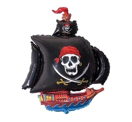 Balon foliowy 14" (mini) w kształcie statku pirackiego, kolor czarny z nadrukiem statku. Przeznaczony do napełniania powietrzem — najlepszy na urodziny tematyczne, wieczór panieński, pikniki czy jako dekoracja stołu i tła do zdjęć. Wymiary przed napompowaniem: 39 × 30 cm.