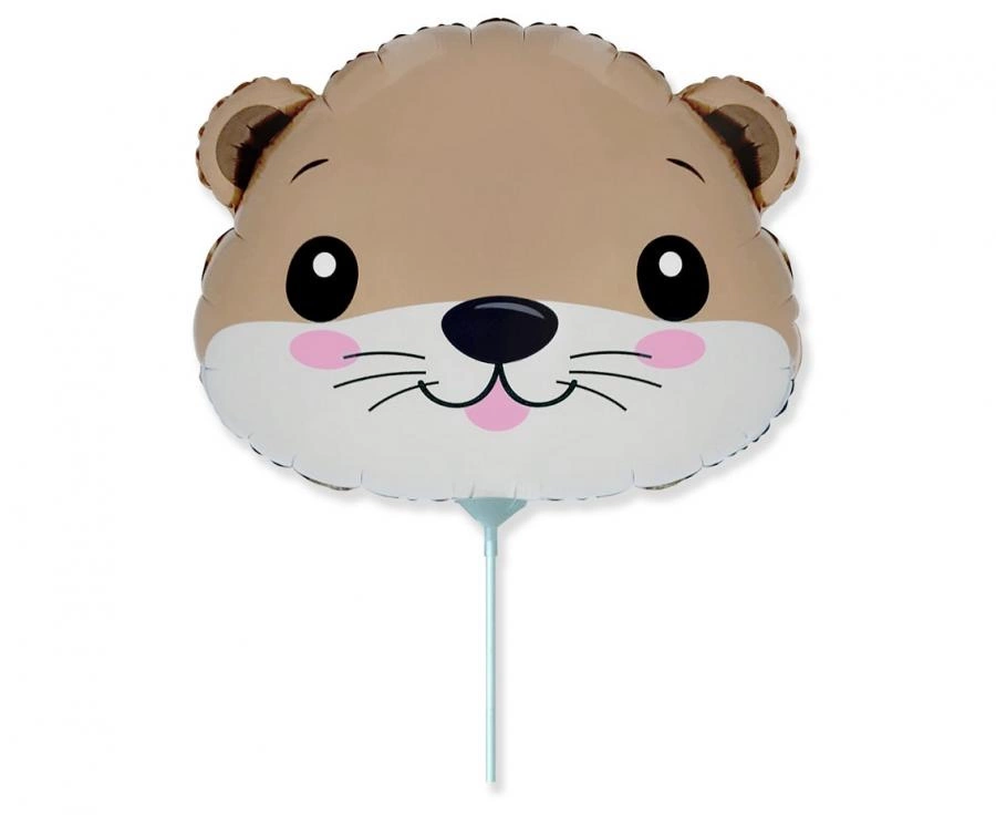 Balon foliowy 14" (35,56 cm) w kształcie głowy uśmiechniętej wydry, w kolorach brązowym i kremowym. Przeznaczony do napełniania powietrzem (bez zaworu) — idealny jako dekoracja stołu, element tła do zdjęć, dodatek na urodziny dzieci, baby shower czy tematyczne przyjęcia.