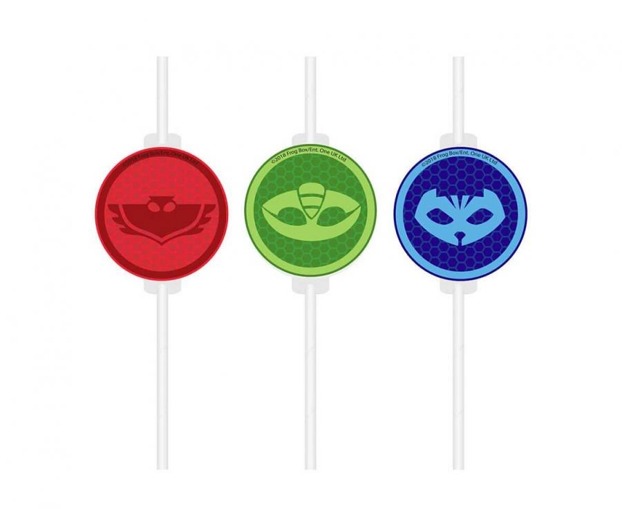 Rurki (słomki) papierowe z medalionem PJ Masks, 4 szt.