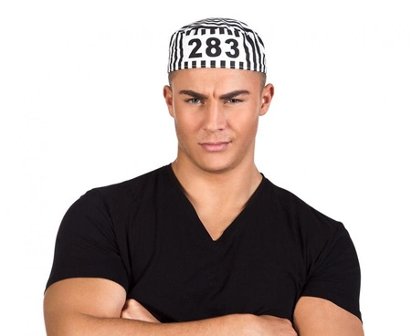 Czapka Więźnia to biało-czarna czapka w paski o obwodzie 55 cm i wysokości 7 cm, wykonana z poliestru z usztywnianym brzegiem. Produkt (1 szt.) od producenta Boland sprawdza się jako element przebrania na karnawał, Halloween, imprezy tematyczne oraz wieczory kawalerskie/panieńskie.