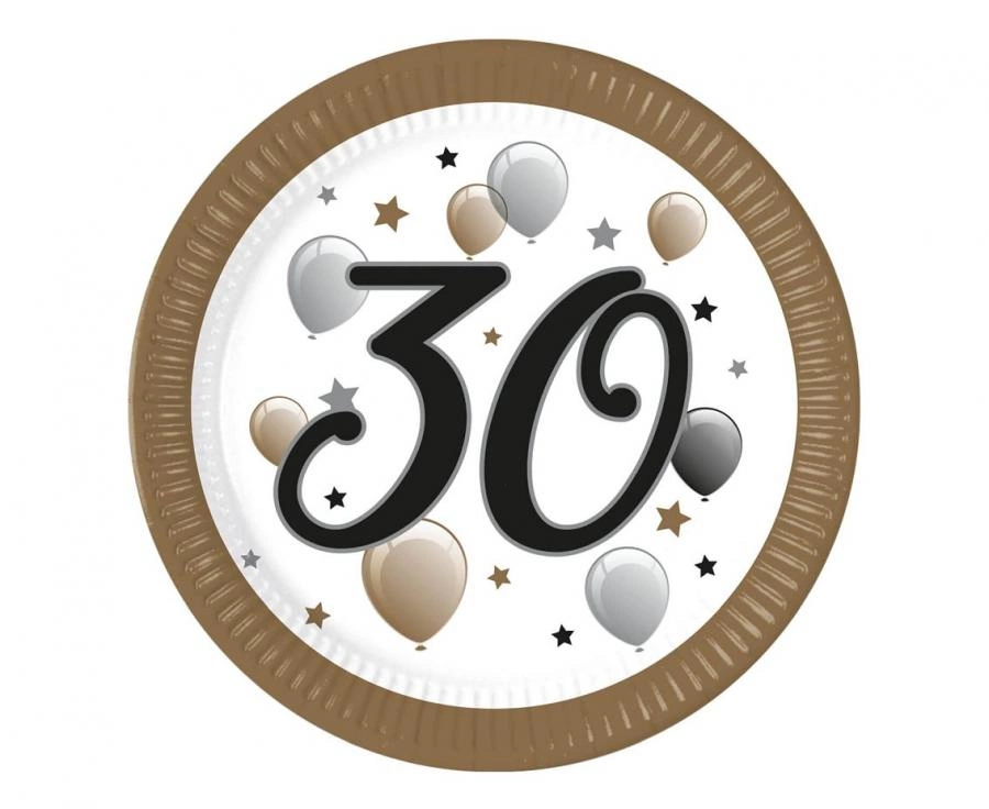 Talerzyki papierowe 30 urodziny FSC, 23 cm, 8 szt.