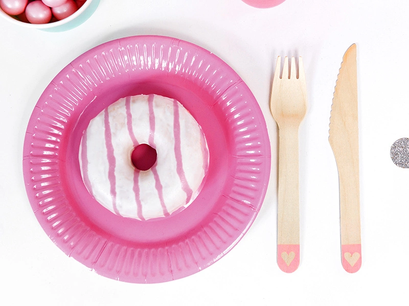 Sztućce drewniane Serca, r. różowy, 16cm (1 op. / 18 szt.)