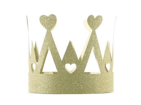 - Korona Sweet Love wykonana z papieru brokatowego w kolorze złotym, wymiary po złożeniu: wysokość ok. 10 cm, średnica ok. 11 cm