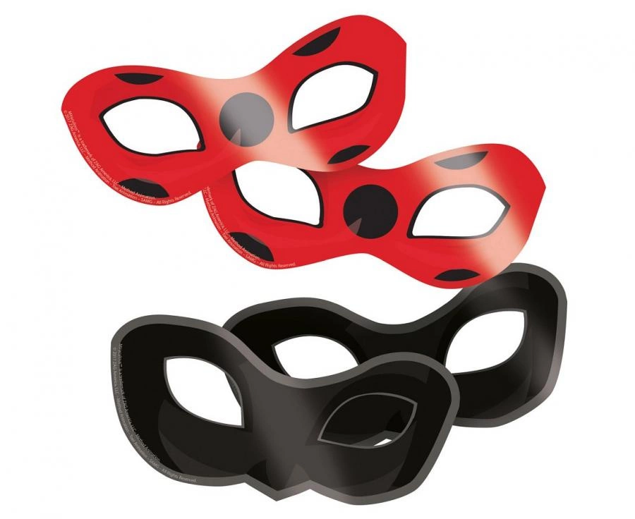 8 sztuk w opakowaniu • Mocowanie na elastyczną gumkę • Idealne na imprezy tematyczne • Dostosowane do dziecięcych twarzy • Maska Miraculum Biedronka i Czarny Kot