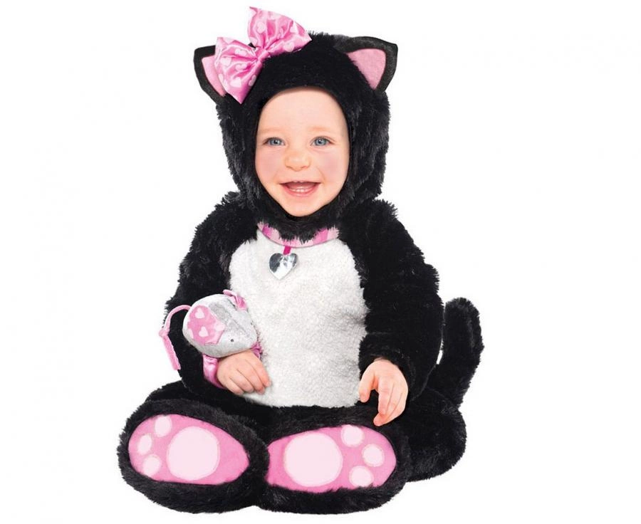 Strój dla dzieci Kotek • Wiek: 6-12 miesięcy • Zawartość: czapeczka, grzechotka, kombinezon, ogonek, rękawiczki • Producent: Amscan • Idealny na Halloween i karnawał
