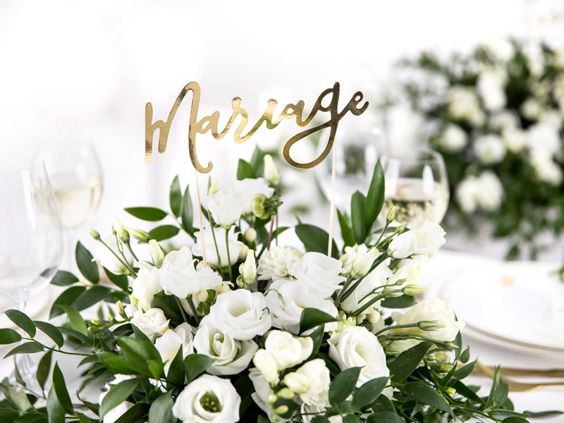 Nie zwlekaj! Dodaj odrobinę luksusu i blasku do swojej uroczystości z naszym topperem na tort Mariage. Idealny na wesela, urodziny i inne wyjątkowe okazje. Zamów teraz i spraw, aby Twój tort był niezapomniany!