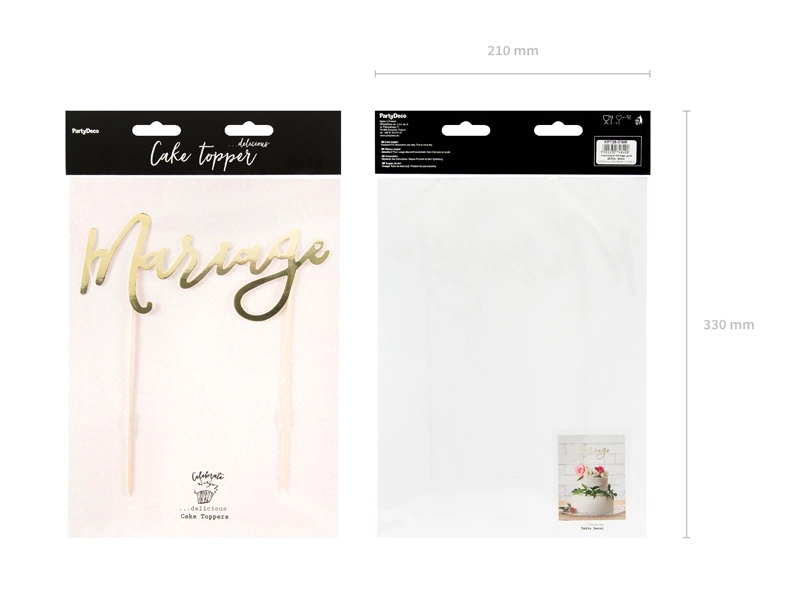 Dodaj odrobinę luksusu do swojego tortu z naszym topperem na tort Mariage! Wykonany z lustrzanego papieru w eleganckim złotym kolorze, ten topper o wysokości 22,5 cm to doskonały wybór na każdą uroczystość, od wesela po urodziny. Jego subtelny, ale efektowny design sprawi, że Twój tort stanie się prawdziwą ozdobą stołu.