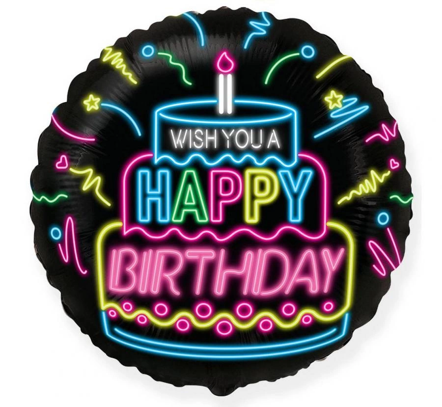 Balon foliowy 18 cali - Happy Birthday- NEON, pakowany