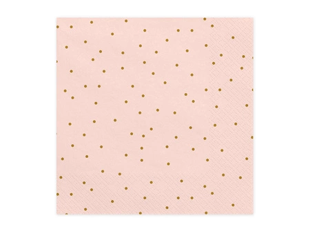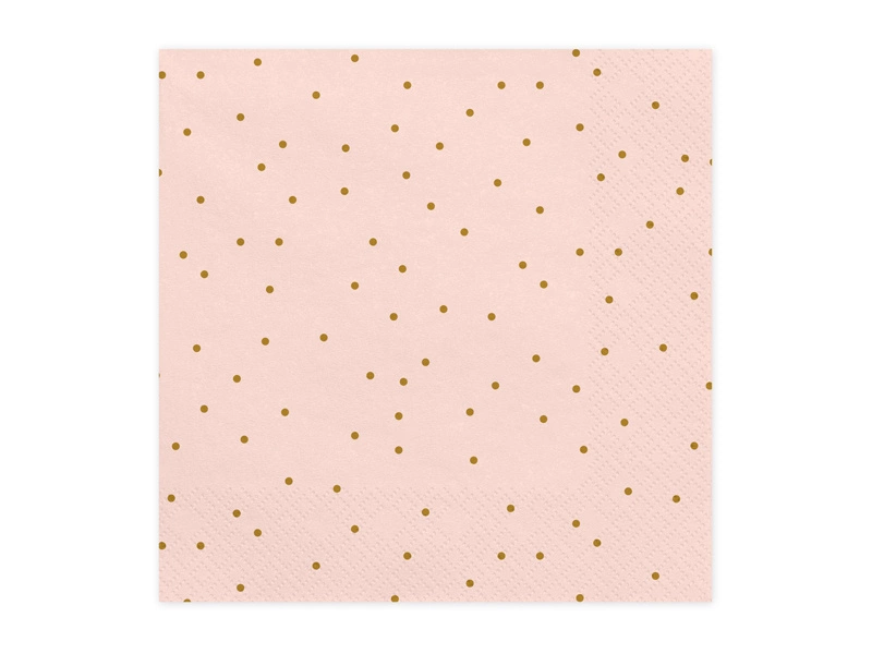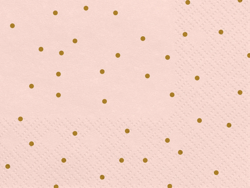 - Serwetki trójwarstwowe Kropeczki w kolorze jasnoróżowym ze złotym nadrukiem, wymiary 33 x 33 cm. (1 op. / 20 szt.)