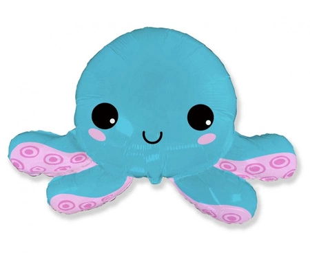 Balon foliowy 24 cale w kształcie ośmiornicy (producent Flexmetal). Wysokość przed napompowaniem ok. 63 cm, szerokość 79 cm. Kolorowy nadruk ośmiornicy, 1 sztuka w opakowaniu. Przeznaczony głównie do napełnienia helem; napełnienie powietrzem spowoduje, że nie będzie się unosić.