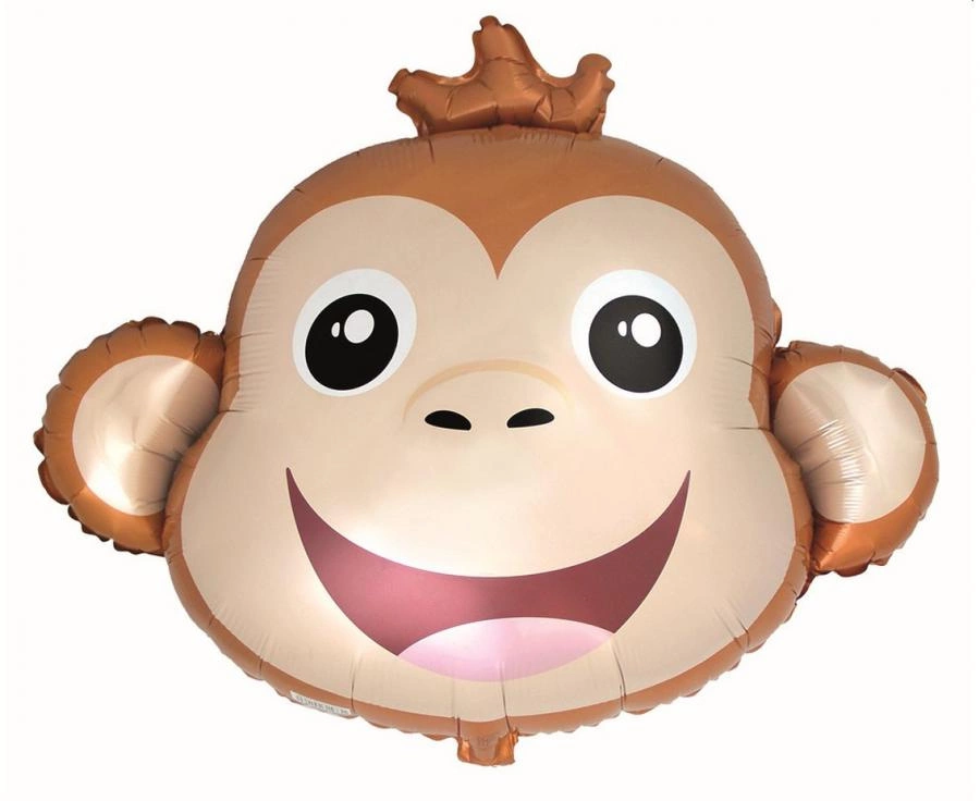Balon w kształcie głowy małpki, pojedyncza sztuka producenta Flexmetal. Przeznaczony do napełnienia helem — wypełniony powietrzem nie będzie się unosić. Sprawdzi się na urodzinach dzieci, imprezach tematycznych oraz jako element bukietu balonowego.