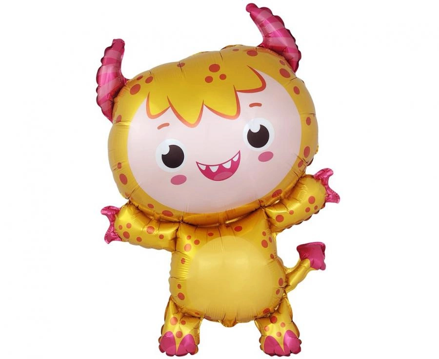Balon foliowy w kształcie małego potwora, kolor żółty, wymiary przed napompowaniem: ok. 86 cm wysokości i 60 cm szerokości. Pojedynczy egzemplarz producenta Flexmetal. Sprawdzi się na imprezach tematycznych: Halloween, urodzinach dziecięcych, baby shower czy przyjęciach z motywem potworków. Można napełnić powietrzem (balon nie będzie się unosić) lub helem (będzie się unosić).