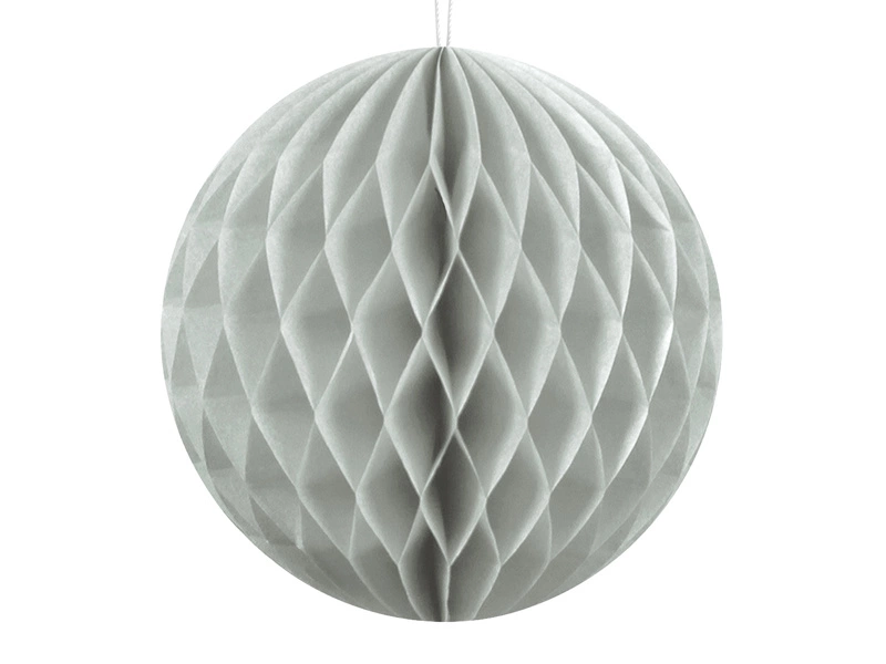 Wprowadź odrobinę wyrafinowania i delikatności do każdej uroczystości dzięki naszej kuli bibułowej w eleganckim jasnoszarym kolorze. Doskonała na wesela, wieczory panieńskie, urodziny, Halloween, baby shower, Boże Narodzenie, Walentynki i wiele innych okazji. Ta dekoracja o średnicy 10 cm z pewnością przyciągnie uwagę i doda uroku Twojemu wydarzeniu.