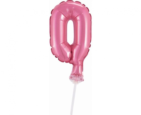 Balon foliowy 13 cm na patyczku "Cyfra 0", różowa