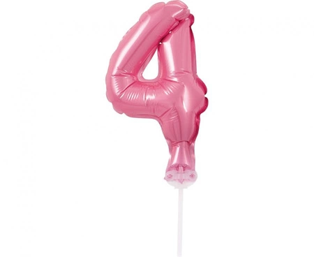 Balon foliowy 13 cm na patyczku "Cyfra 4", różowa
