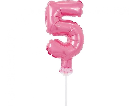 Balon foliowy 13 cm na patyczku "Cyfra 5", różowa