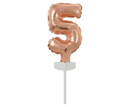 Balon foliowy 13 cm na patyczku "Cyfra 5", różowo-złota