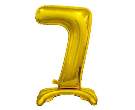 Balon foliowy w kształcie cyfry 7, kolor złoty, wysokość po napompowaniu 74 cm. Produkt przeznaczony do napełnienia powietrzem — po napompowaniu stoi samodzielnie. Sprawdzi się jako element dekoracji wnętrz na urodziny, wesele, wieczór panieński, baby shower czy jako tło do zdjęć.
