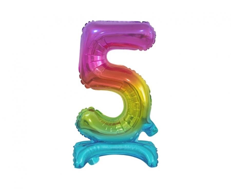 Balon foliowy Cyfra stojąca 5, tęczowa, 38 cm
