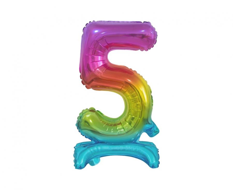 38 cm • Cyfra 5 • Wzór tęczowy • Do napełnienia powietrzem • Wielorazowe • Rurka do pompowania w zestawie