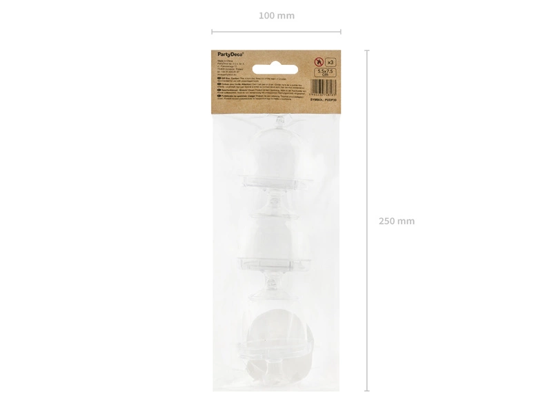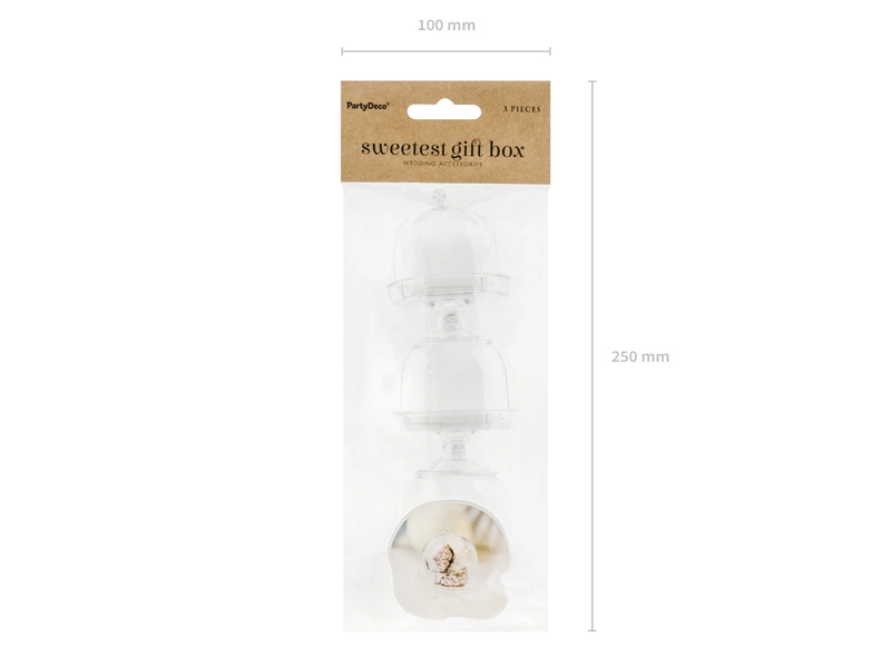 - Pudełeczka Patera wykonane z bezbarwnego tworzywa, idealne na prezenciki dla gości, wymiary ok. 5,5 x 7,5 cm (1 op. / 3 szt.)