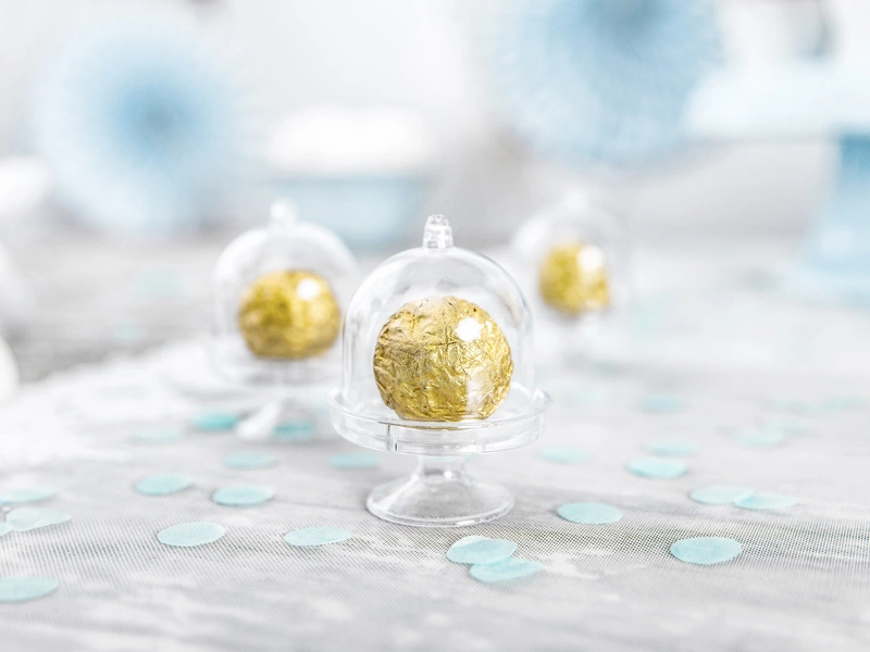 Jeśli szukasz eleganckiego i funkcjonalnego rozwiązania na swoją imprezę, Pudełeczka Patera są idealnym wyborem. Wykonane z przezroczystego tworzywa, te kompaktowe pudełeczka o wymiarach 5,5 x 7,5 cm doskonale nadają się na prezenciki dla gości. Sprawdzą się na różnorodnych wydarzeniach, takich jak wesela, wieczory panieńskie, urodziny, baby shower, Boże Narodzenie, Walentynki i wiele innych.