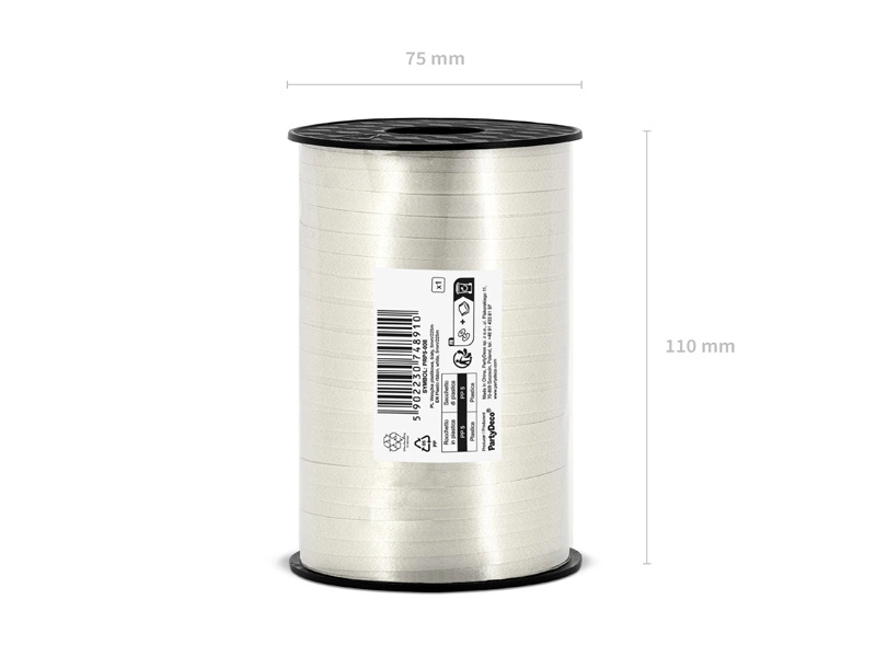 - Wstążka plastikowa w kolorze białym, szerokość ok. 5 mm, długość ok. 225 m.