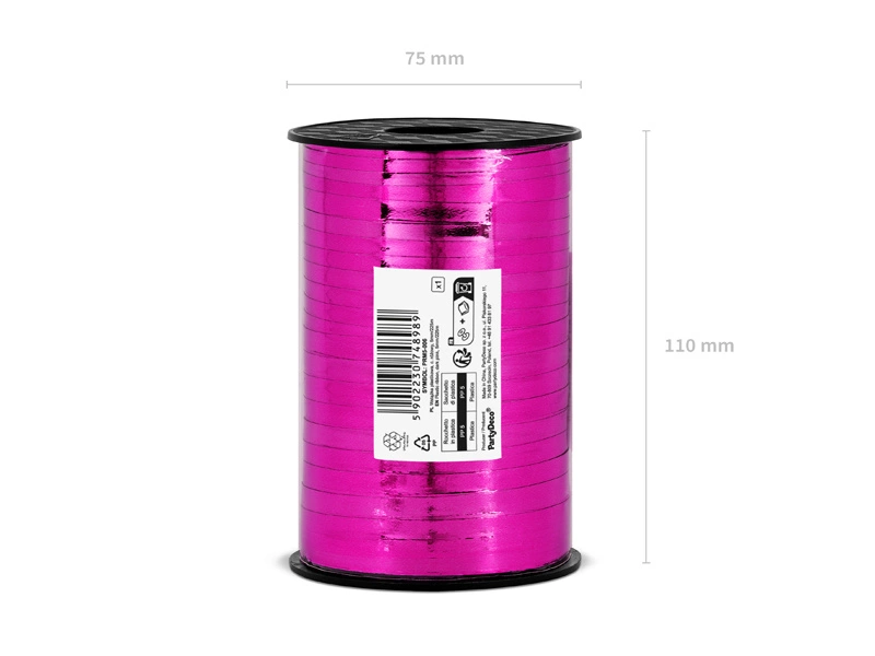 - Wstążka plastikowa metalizowana w kolorze ciemnoróżowym, szerokość ok. 5 mm, długość ok. 225 m.