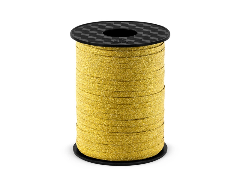 - Wstążka plastikowa brokatowa w kolorze złotym, szerokość ok. 5 mm, długość ok. 225 m.
