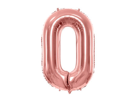 - Balon foliowy metalizowany Cyfra ''0'' w kolorze różowego złota, rozmiar przed napompowaniem ok. 100 cm (39''), rozmiar po napompowaniu ok. 86 cm (34''). Do napomowania powietrzem i helem.