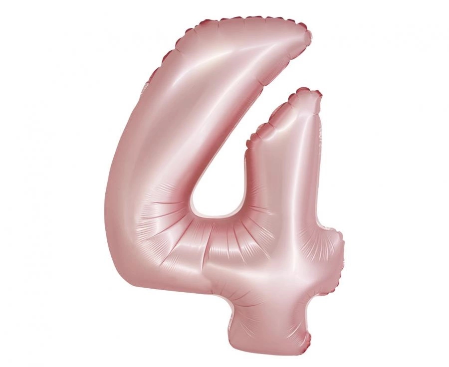 Balon foliowy w kształcie cyfry 4, kolor jasnoróżowy matowy, rozmiar po napompowaniu około 76 cm. Produkt GoDan S.A. z linii SMART, przeznaczony przede wszystkim do napełnienia helem — sprawdzi się na urodzinach, rocznicach, baby shower czy wieczorach panieńskich jako widoczny element dekoracji.
