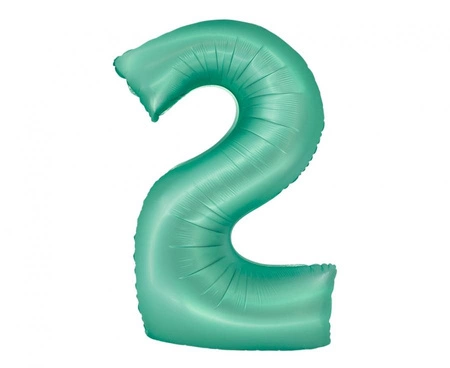 Matowy miętowy balon foliowy w kształcie cyfry 2 o wymiarze po napompowaniu 76 cm. Przeznaczony głównie do napełnienia helem — po wypełnieniu powietrzem nie będzie się unosić. Pojedynczy egzemplarz z zaworem samozamykającym, z kolekcji Smart (GoDan).