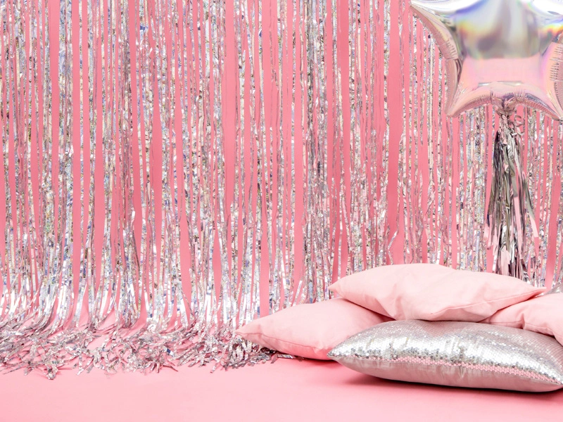 Pro Tip: Aby uzyskać jeszcze bardziej efektowny wygląd, połącz kurtynę holograficzną z balonami w podobnych kolorach lub z dodatkami świetlnymi, takimi jak girlandy LED.