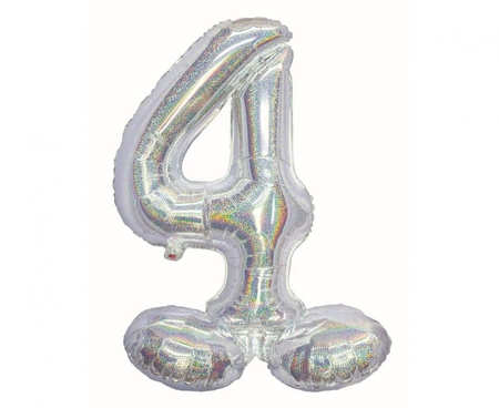 Balon foliowy , Cyfra stojąca 4, holograficzna srebrna, 72 cm