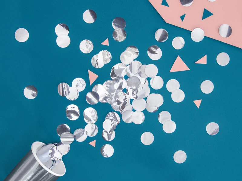 - Połącz srebrne konfetti z innymi kolorami, aby stworzyć unikalne i spersonalizowane dekoracje.