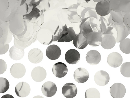 - Konfetti Kółka, wykonane z folii w kolorze srebrnym, średnica ok. 2,5cm, 15g