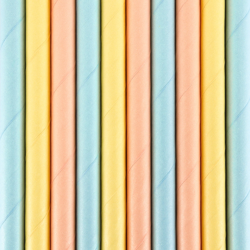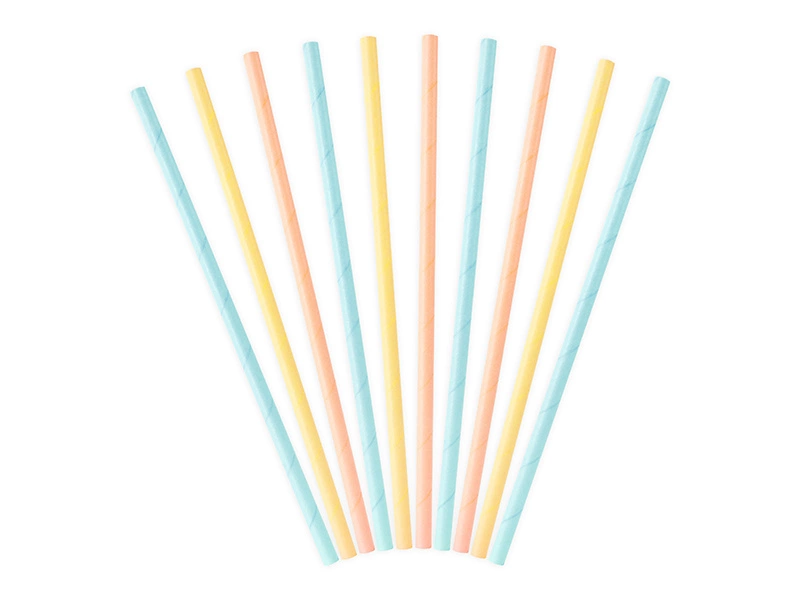 - Słomki papierowe Summer time, mix kolorów (turkusowy - 4 szt., żółty - 3 szt., brzoskwiniowy - 3 szt.), długość ok. 19,5 cm. (1 op. / 10 szt.)